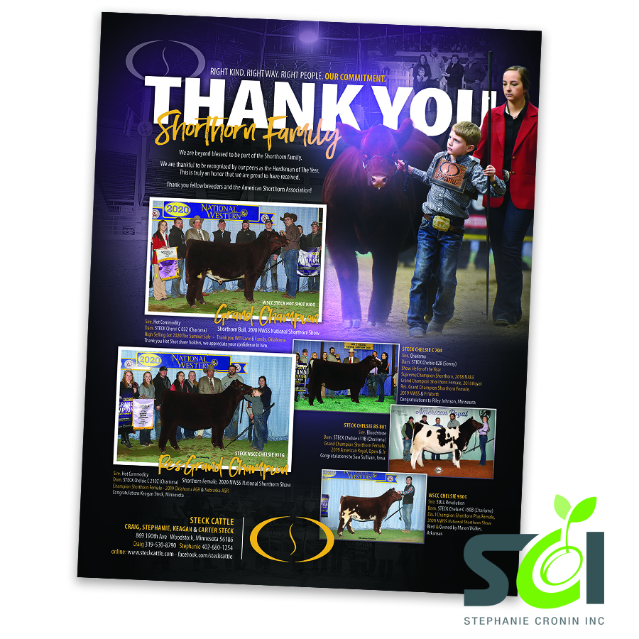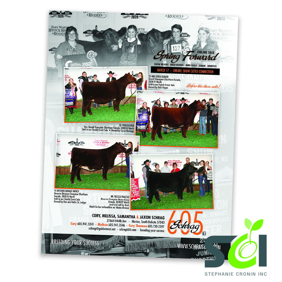 View Larger Image Schrag 605 March 2020 Shorthorn CountryStephanie Steck2020-03-02T17:26:31-06:00 Project Description Project Details Categories: 2020 March Advertisementslivestock ad designMaine-Anjou cattleprint designshorthorn cattleshow cattle ad design Share This Story, Choose Your Platform! FacebookXRedditLinkedInTumblrPinterestVkEmail Related Projects Midwest Genetics 2020 Sires Directory Gallery Midwest Genetics 2020 Sires Directory March 31st, 2020 2020 Lautner Farms Sire Directory Gallery 2020 Lautner Farms Sire Directory March 17th, 2020 Willow Springs Cattle March Ad Gallery Willow Springs Cattle March Ad March 2nd, 2020 Steck Cattle March 2020 Ad Gallery Steck Cattle March 2020 Ad March 2nd, 2020 Sankey’s 6N Ranch Houston ad Gallery Sankey’s 6N Ranch Houston ad March 2nd, 2020